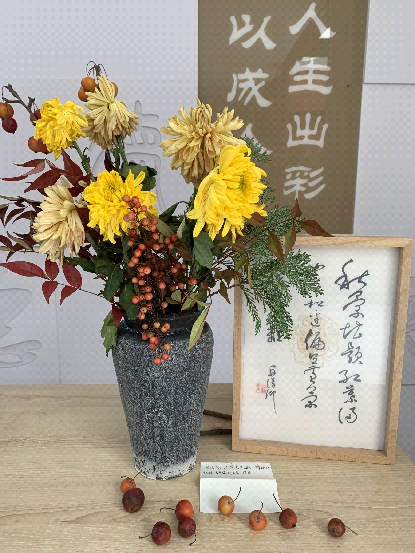 除了个人项目,本次美育节还开设了极具特色的集体项目。同学们在插花的过程中,感受着亲手创造美的乐趣,再现大自然美和生活美。