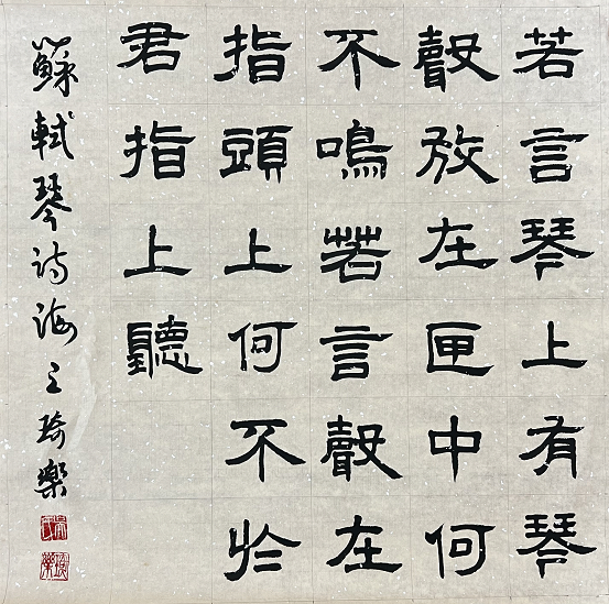 在美育节闭幕式的现场,六5班俞嘉豪同学现场撰写了书法作品。笔法刚劲有力,行云流水。美术章老师进行了专业点评。